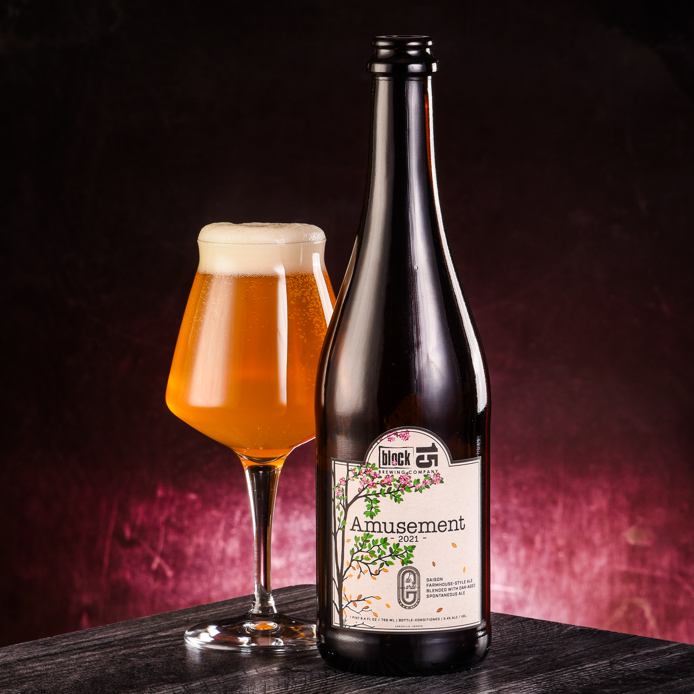 The brewers at blended a Block 15 Golden Saison with a spontaneously fermented, oak aged Wild Ale from DeGarde. Then they hopped the mixture with Nelson Sauvin, giving it brightly vinous white wine nuances.
