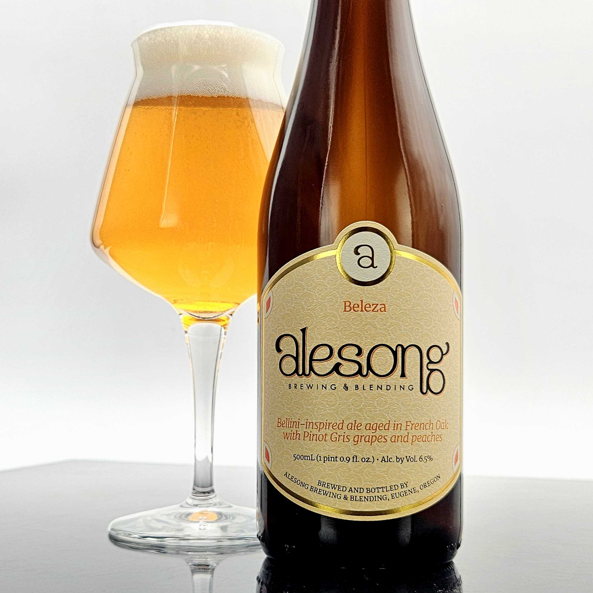 The craft it, the Alesong crew blended two beers — one beer cofermented on biodynamically-grown, Pinot Gris grapes from next door at King Estate and the other on massive amounts of fresh peaches.