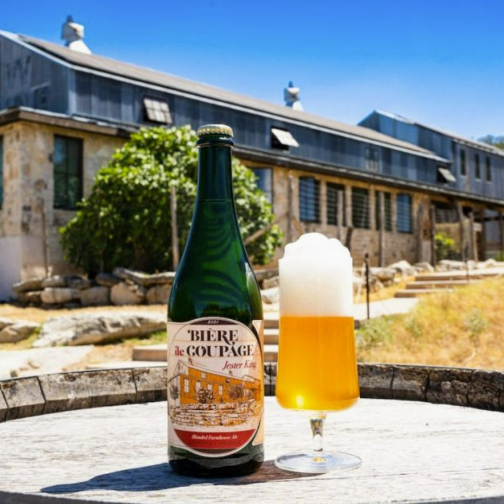For those who may not be familiar, a Biere de Coupage is created by blending older and younger beers together. For their iteration, the crew at Jester King took one of their celebrated SPON beers (itself blended from multiple batches going back several years) and then cut it with a young, vibrant, dry-hopped Farmhouse Ale. Then they bottle conditioned the blended brew for another year!