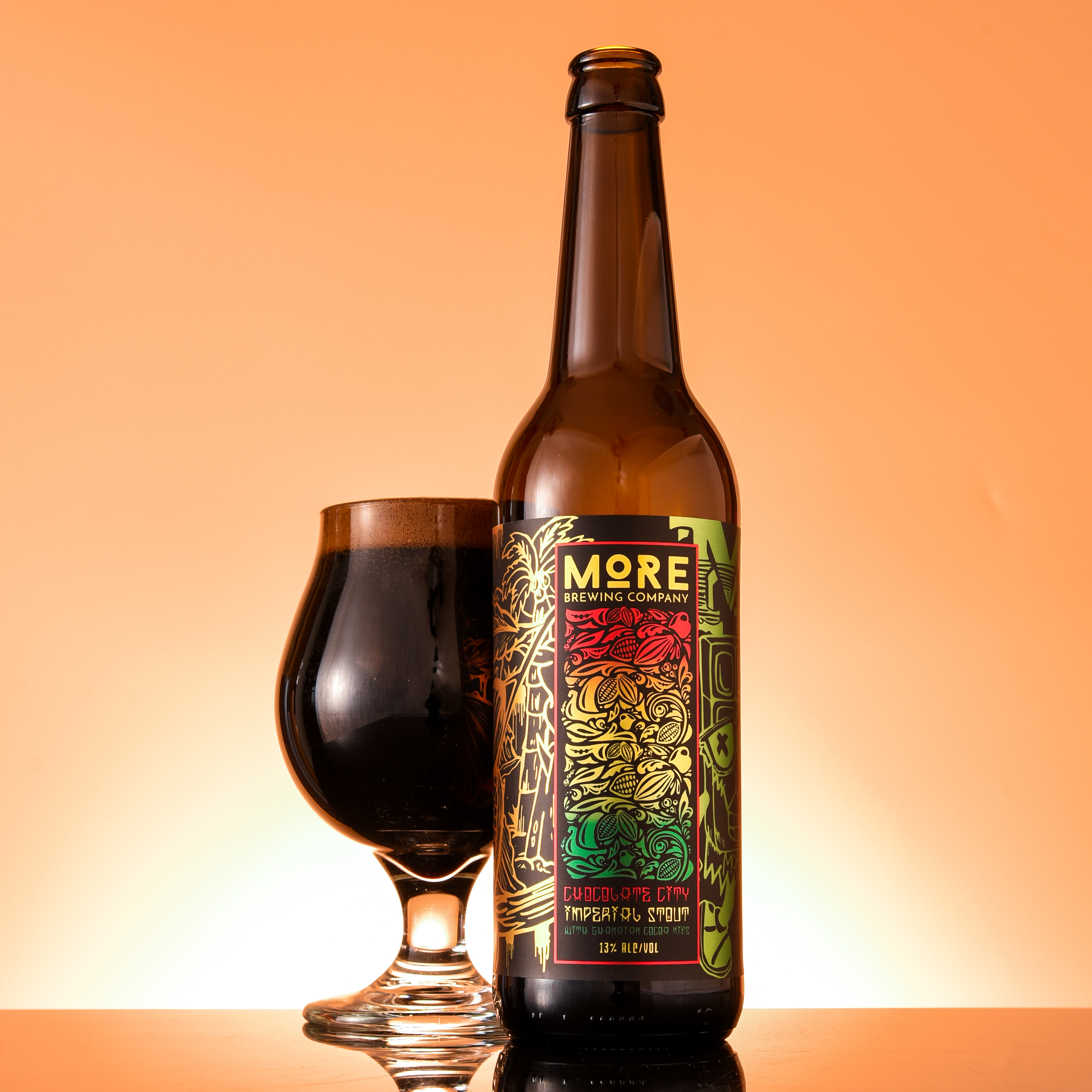 More Brewing constructed this heady Imperial Stout as a monument to a single adjunct: Ghanaian cacao nibs.