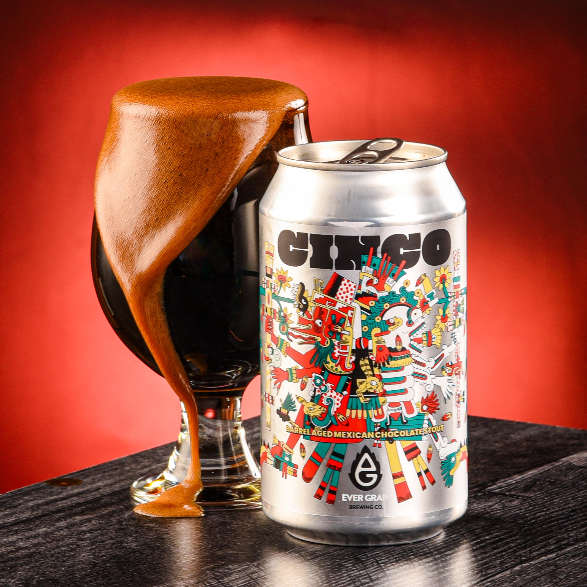 To craft Cinco, Ever Grain started with a blend of Stouts aged for a minimum of 16 months in bourbon barrels. Then they conditioned it on a blend of Mexican chocolate spices to wrap it all up in decadent dessert tones with a subtle kick.