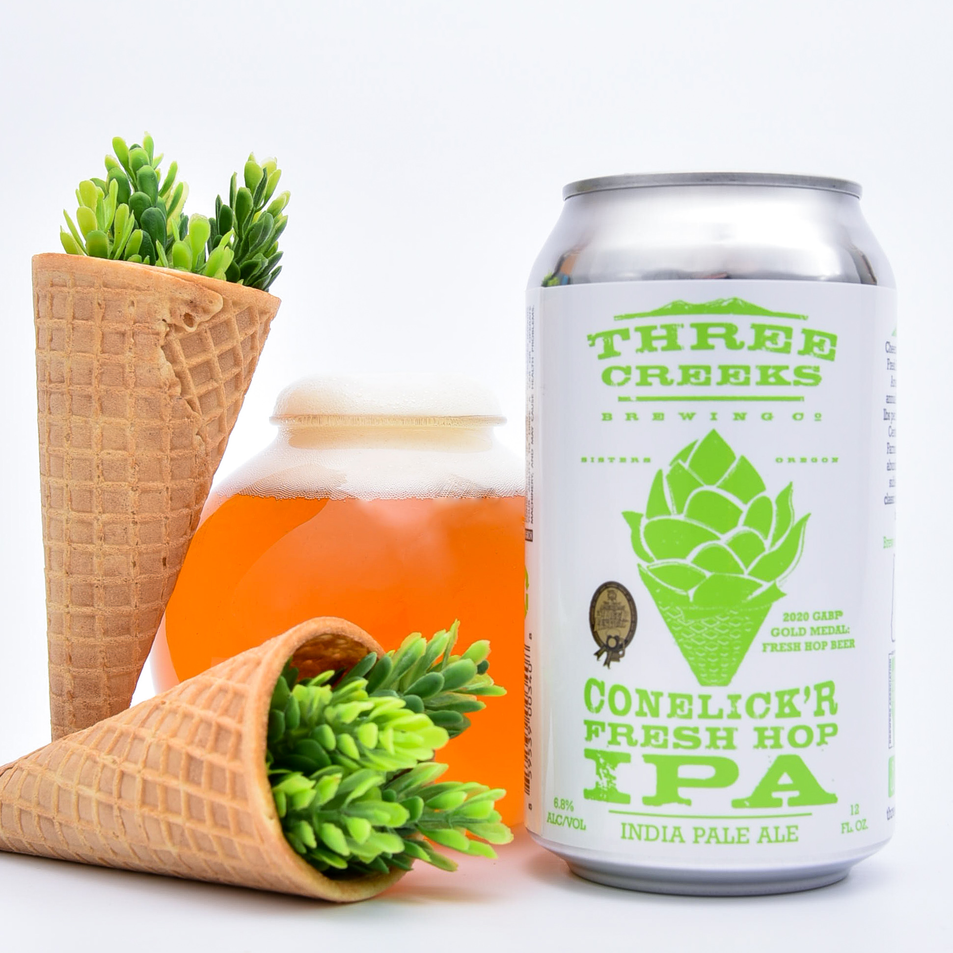 For Conelick’r Fresh Hop IPA, the crew at Three Creeks took freshness to a whole new level! Over 300 pounds of fresh Centennial Hops went into the brew within four hours of harvest!