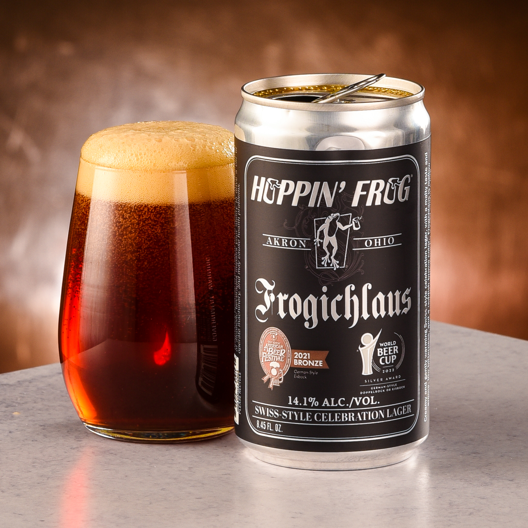 Its thick pour carries scents of caramelized brown sugar and toffee, while the sip is full of sweet, holiday spice from Hoppin’ Frog’s Swiss Lager yeast.