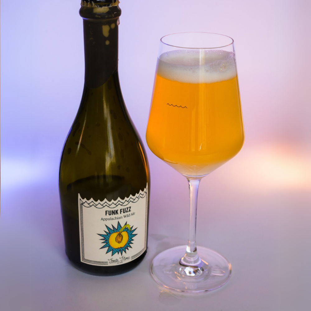 An impressive 99% of the ingredients Fonta Flora used for Batch #9 are locally sourced. The wort features their own well water, burlap-aged hops, and barley and raw wheat grown nearby. Over the course of about 14 months, they fermented the brew with local yeasts and microflora, aged it in American oak foeders, rested it on mountains of juicy local peaches, aged it for a second time in oak barrels, and finally bottle conditioned it.