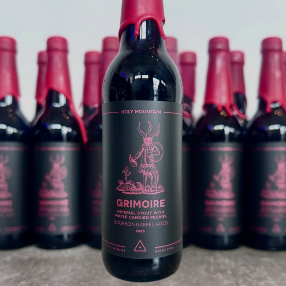 To make it, the craft warlocks at Holy Mountain blended Imperial Stout aged in bourbon barrels for 40, 22, and 16 months. Then they conditioned the whole thing on whole maple candied pecans.