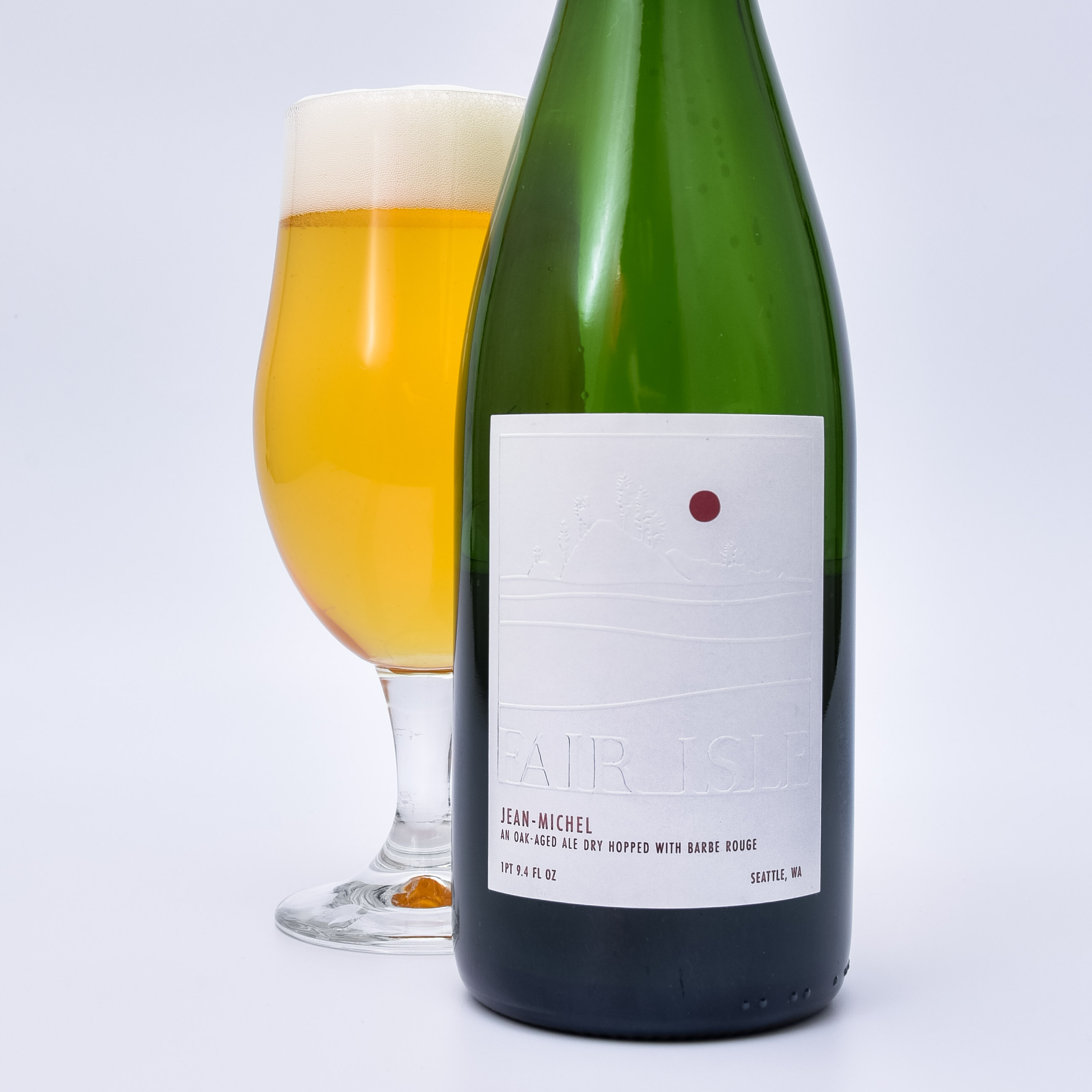 This 6.9% ABV Saison is a blend of Farmhouse Ales all aged in oak puncheons between three, six, and nine months. After merging these Ales into one brew, the Fair Isle team dry-hopped Jean-Michel with Barbe Rouge or “Redbeard” Hops from Oregon. Combined with the blend’s notes of oaky vanilla and hay-like funk, the hops impart an enticing wild berry bouquet on the nose and sweetly fruity flavors on the tongue — reminiscent of strawberry pound cake.