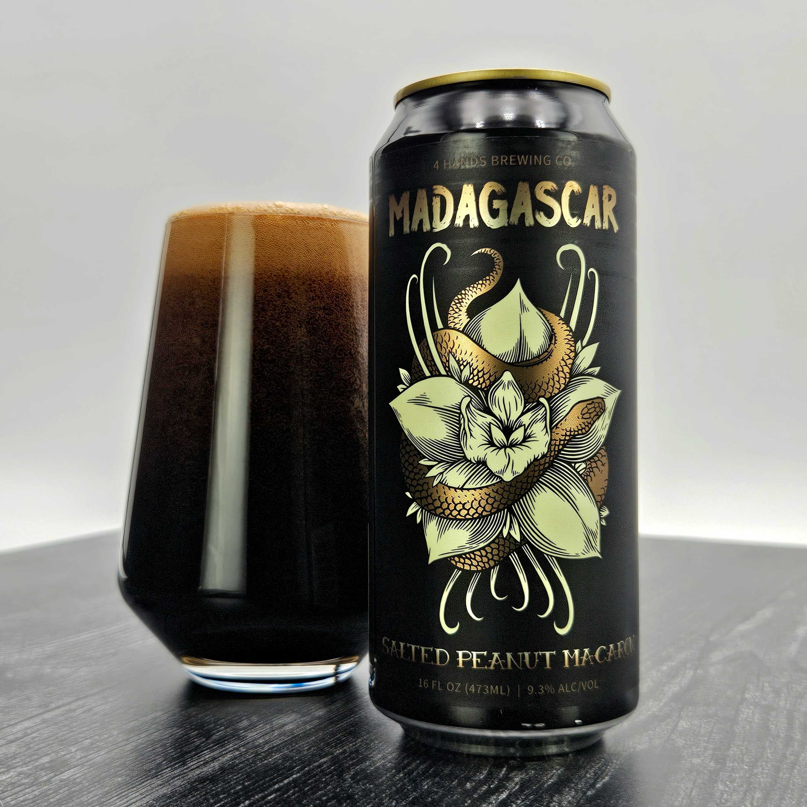 4 Hands began by aging a cocoa-y, lactose-laced Imperial Stout in freshly-emptied bourbon barrels. Next they infused it with Madagascar vanilla, a dash of flaky sea salt, and all-natural peanut and almond flavors.