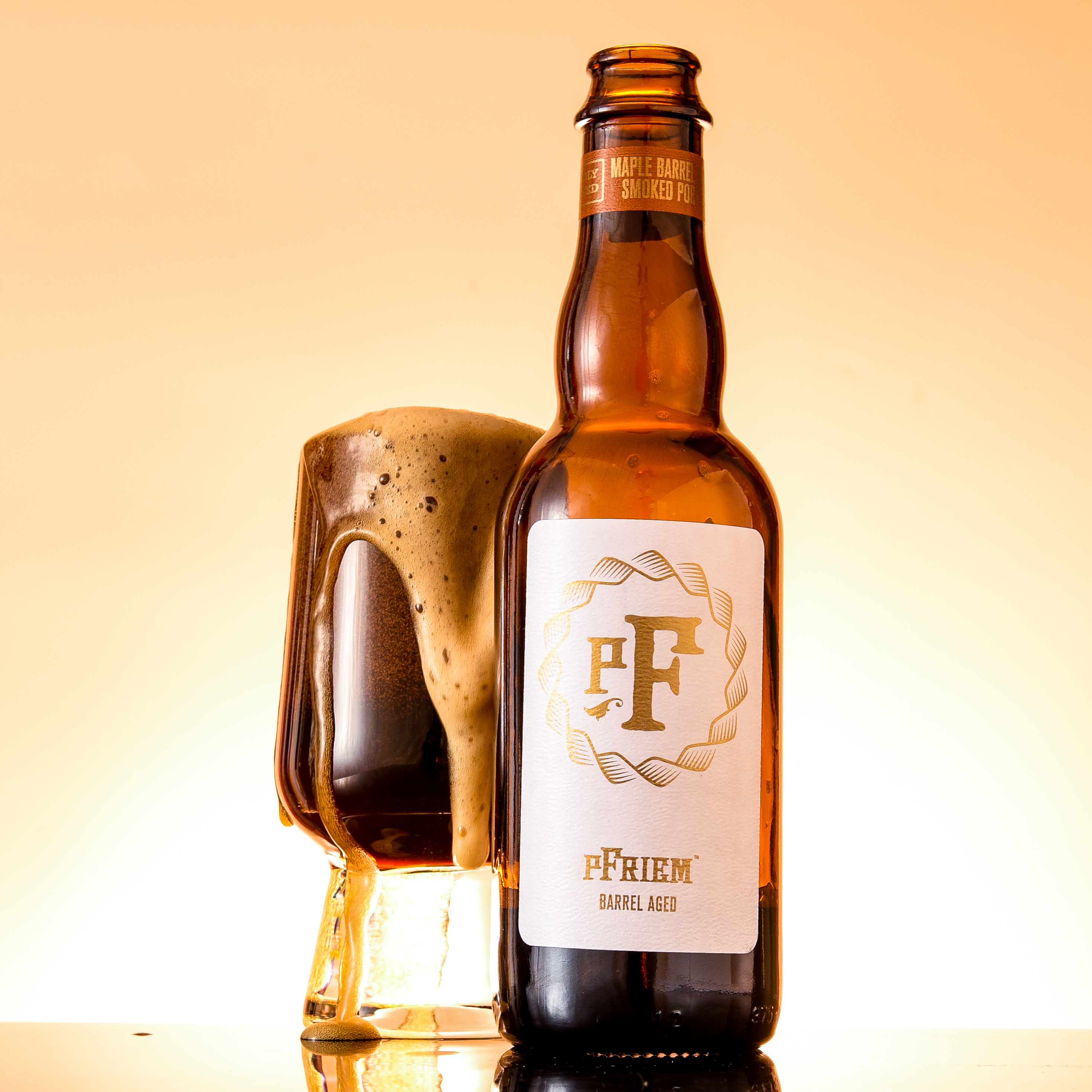 pFriem brewed Maple Barrel Aged Smoked Porter with eight different specialty malts, including chocolate malt, oats, and beechwood-smoked malt. And they hopped it with Chinook to nudge it toward its 45 IBU and bolster the brew’s mild campfire tones with a touch of pine resin.
