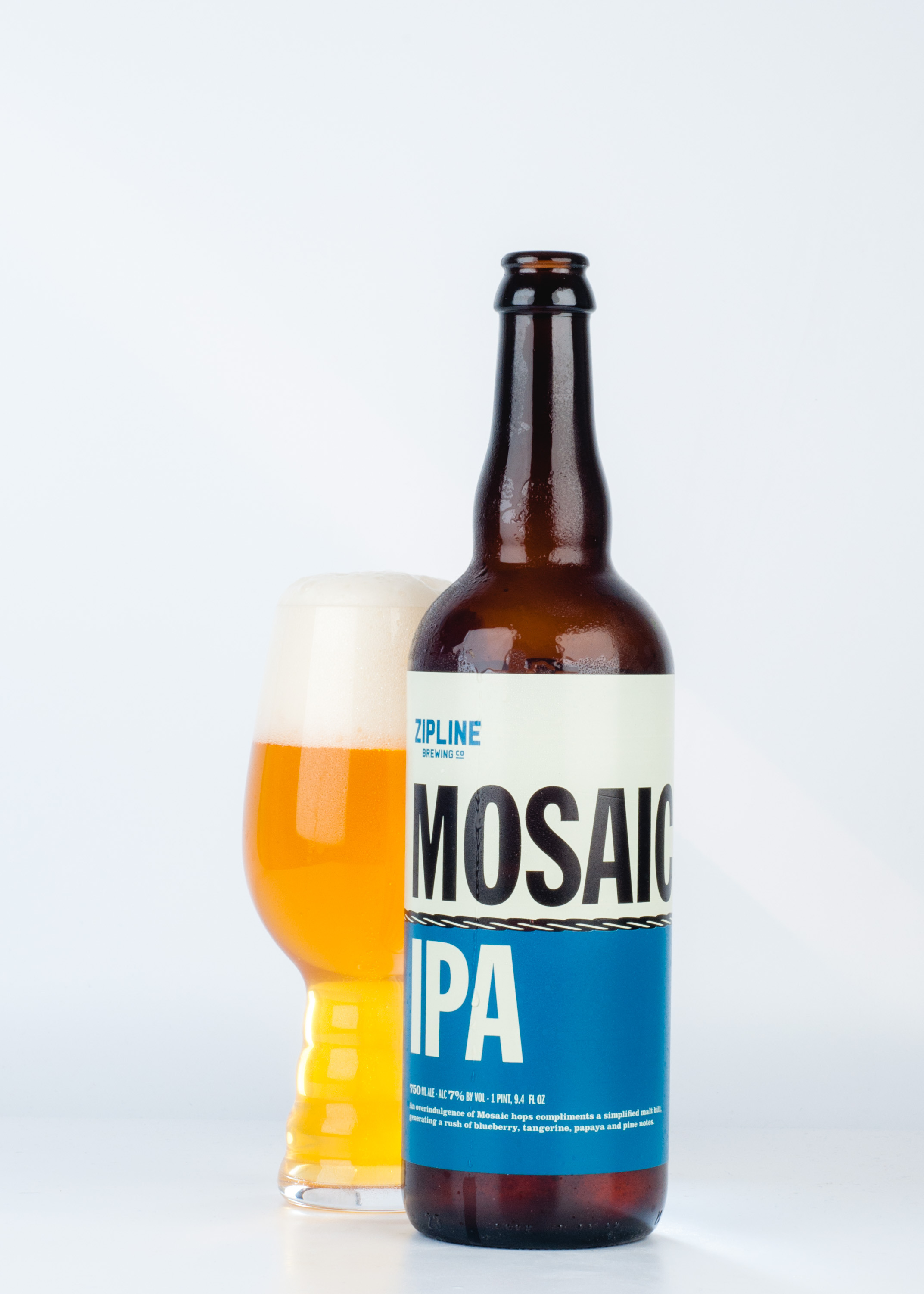 Mosaic IPA from Lincoln’s Zipline Brewing packs an explosion of succulent tangerine, tangy-sweet blueberry, and juicy papaya flavors! Soft waves of pithy citrus surround your tongue, while your taste buds are tickled by a whisper of bitterness on the finish.