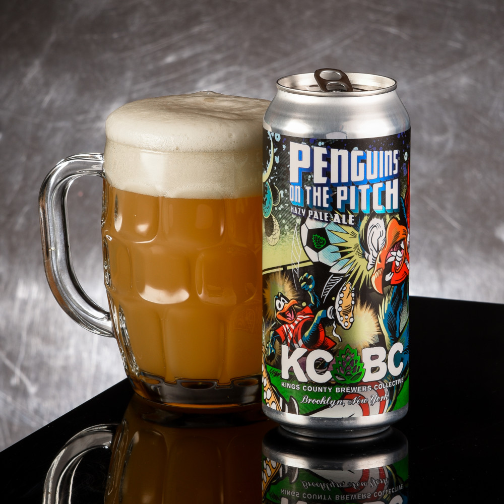 The Brooklyn crew at KCBC brewed a Hazy with hops from five continents to honor the world’s game with Penguins on the Pitch! North America, Australia, Africa, South America, and Europe are represented by the Citra, Galaxy, African Queen, Patagonia Passion, and Hallertau Blanc Hops swirling through every juicy sip.