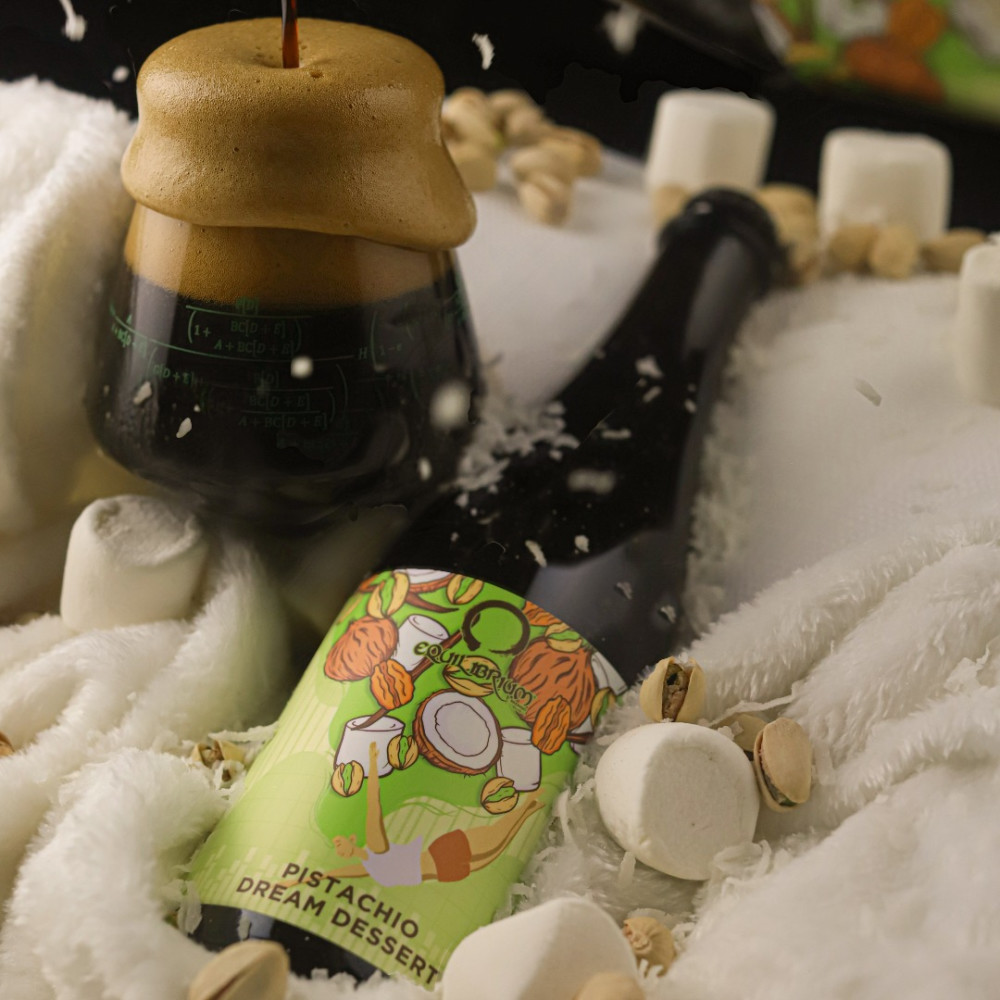 The EQ crew started with a creamy base Stout before adding pistachios and pecans for rich, nutty nuances. Then they added coconut, marshmallow, and Madagascar vanilla for a silky sweet sip.