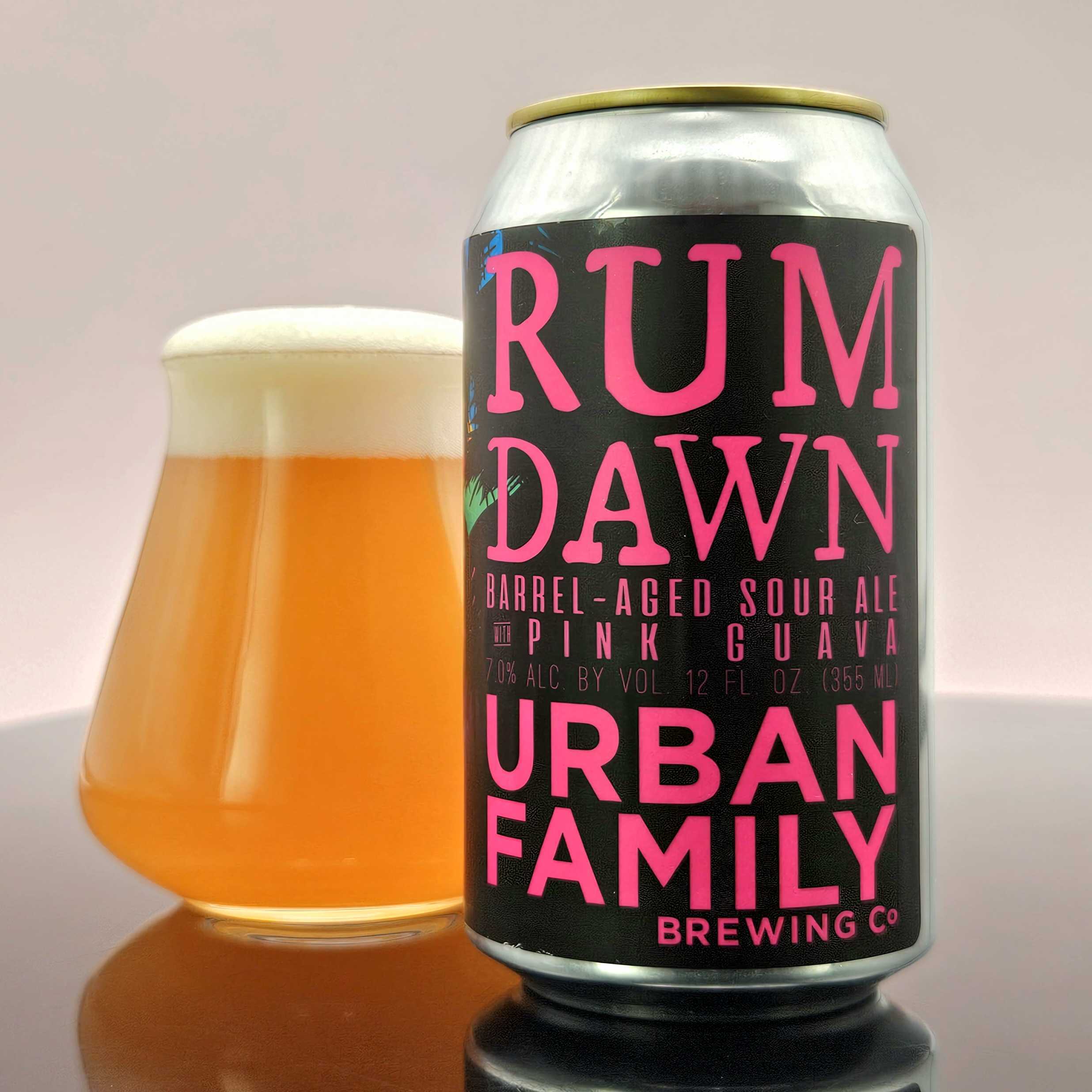The Urban Family crew made today’s tropical sipper with a pink guava-infused Sour Ale base. Then they aged it in — you guessed it! — a bunch of boozy rum barrels.