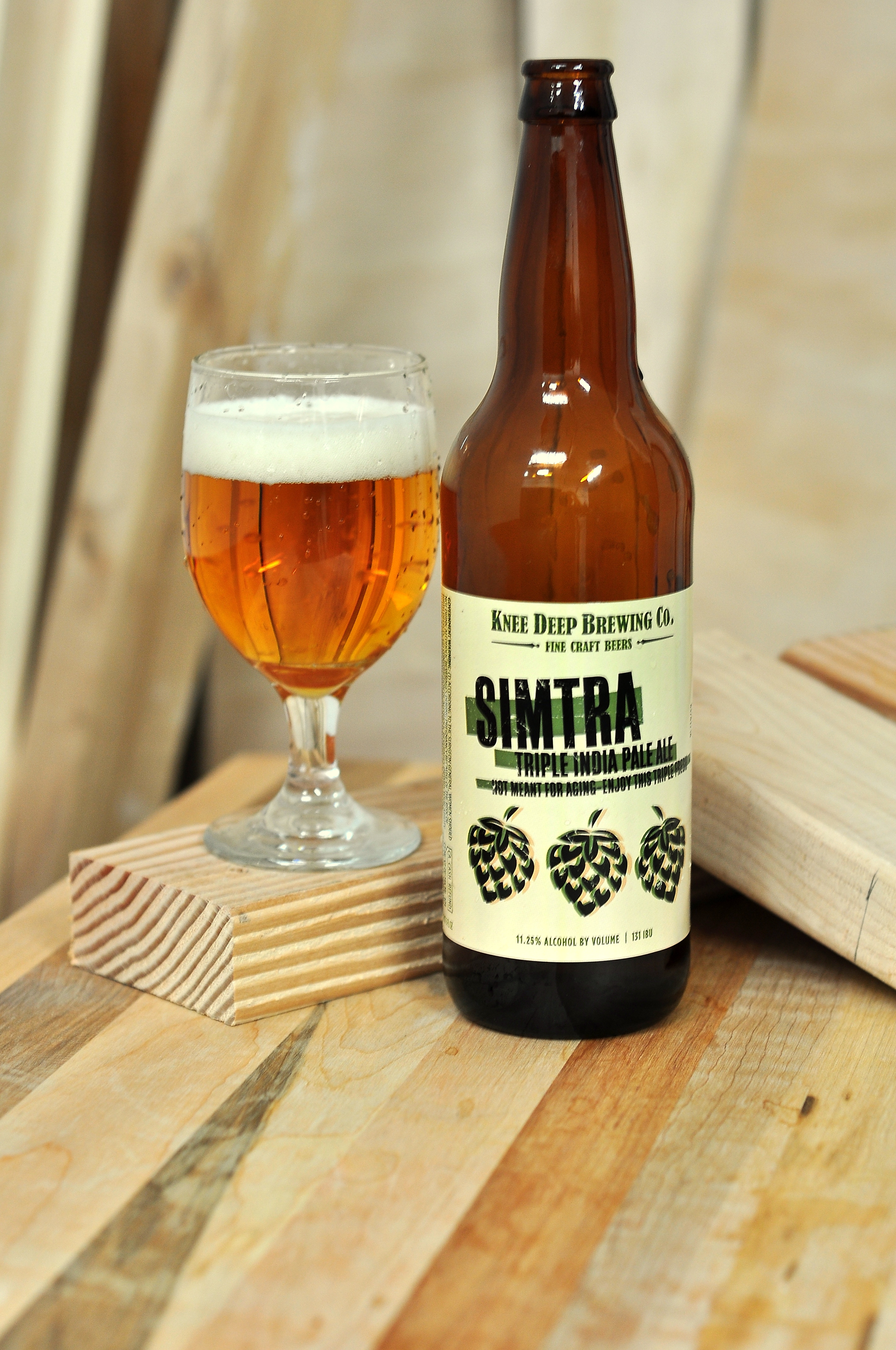 Knee Deep Brewing’s Simtra Triple IPA is an uncensored hoppy deluge of 131 IBUs and 11.25% ABV.