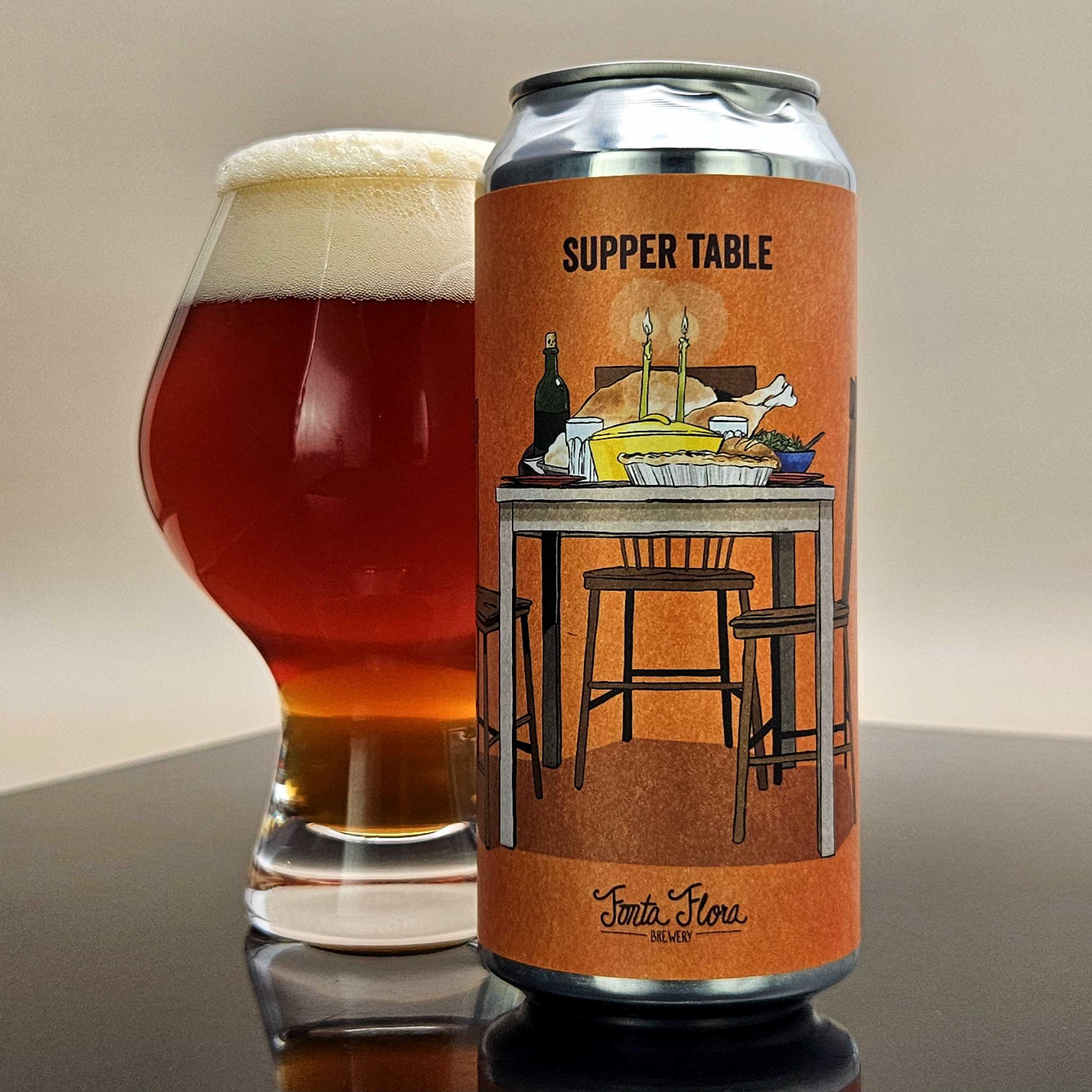 Fonta Flora started with an Amber Ale made from locally-grown barley and a dash of caramel malt. After a first fermentation using their favorite house Ale yeast, the team refermented Supper Table atop loads of delectable North Carolina sweet potatoes. Finally, they aged the brew on a thoughtful blend of cinnamon, ginger, allspice, cardamom, clove, nutmeg, and vanilla.