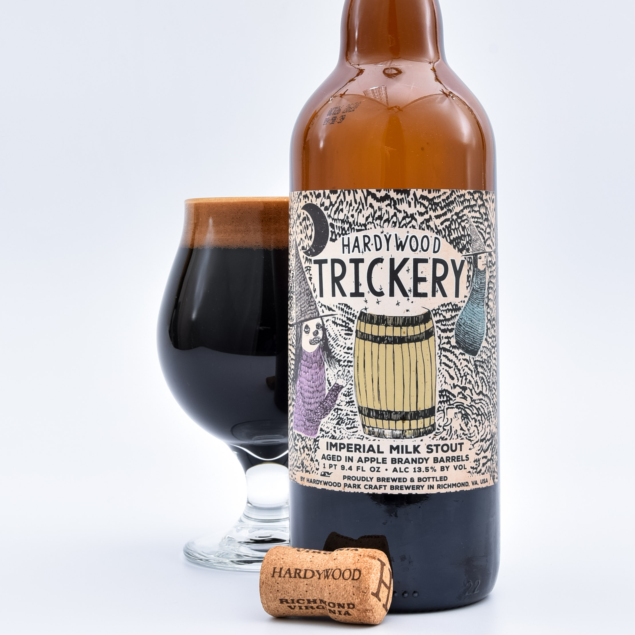 Twenty-one months. That’s how long today’s Trickery Stout aged in hard-to-find apple brandy barrels.