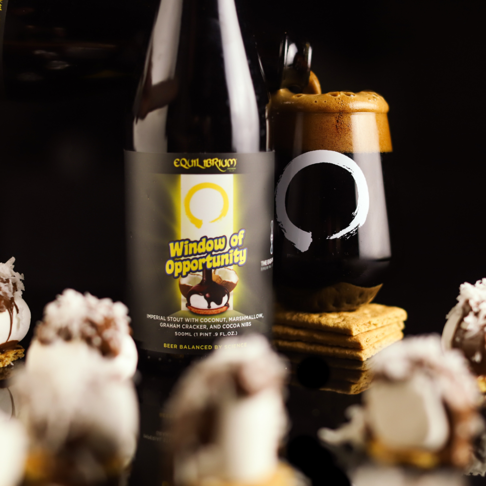 The mad scientists at Equilibrium and their buddies at Eighth State took inspiration from chocolatey, toasty, mallow-filled Mallomar cookies to dream up this nostalgic brew. To make Window of Opportunity, they conditioned a fudgy Imperial Stout base on cacao nibs, marshmallow, graham crackers, and flaked coconut.