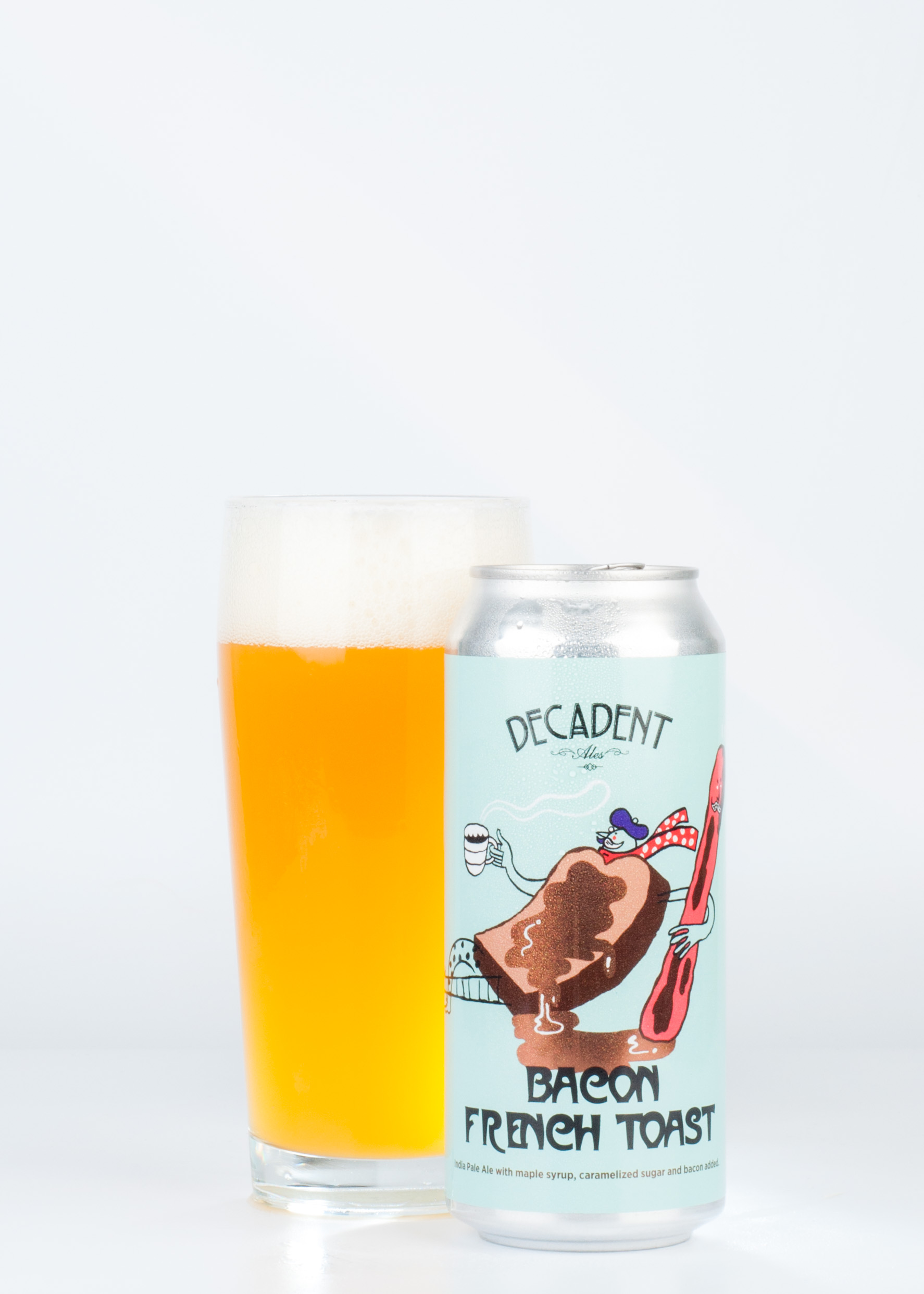 Rejoice in liquid waves of maple-cinnamon sweetness covering savory hints of bacon. So rich and smooth, each taste leaves you guessing how Decadent hides all the 8.4% ABV heat. Sip after sip, the soft mouthfeel is like biting into freshly baked French Toast slathered in syrup and balanced by sizzling bacon intensity.