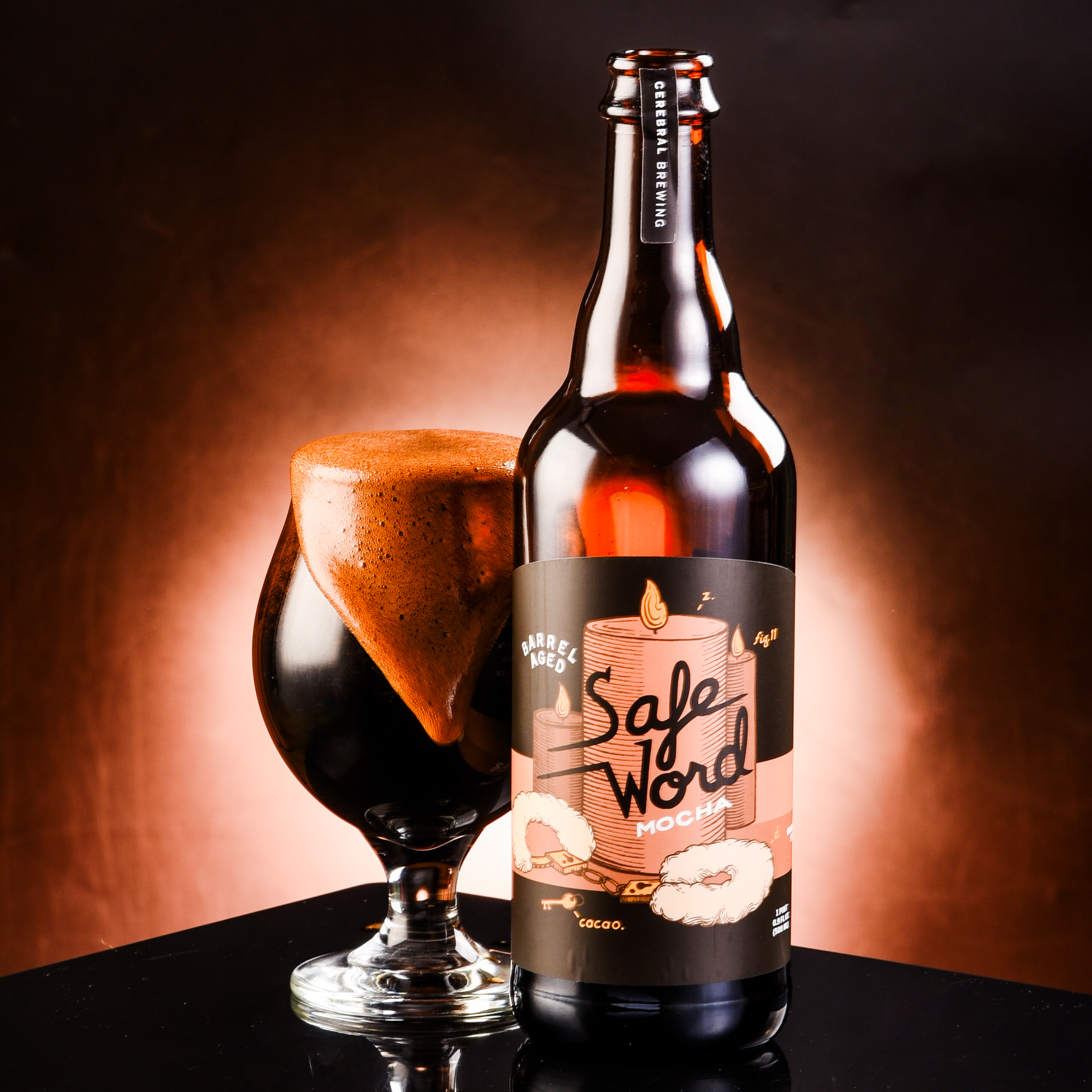 Cerebral stuffed Safe Word: Mocha with Ecuadorian cacao nibs, Filipino cacao nibs, Tahitian vanilla, and locally-roasted Costa Rican coffee. But before it even touched those namesake café ingredients, the base of this sultry Stout lounged in bourbon barrels from Old Fitzgerald, Booker’s, and Old Forester for 27-32 months!