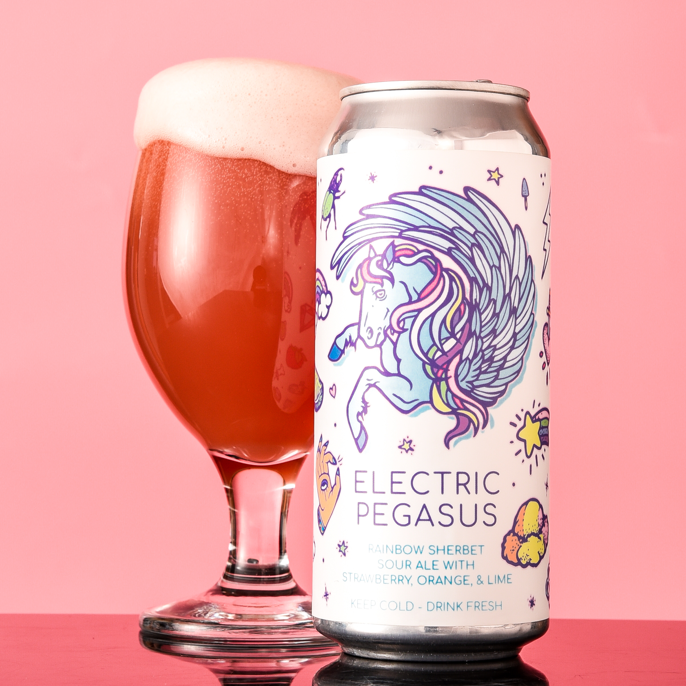 To hop aboard this mythic mount is to become enchanted with zinging zest. Sweet-tart red berry nuances arc through each light and refreshing sip to land with a biscuity finish that’s sure to bring joy.