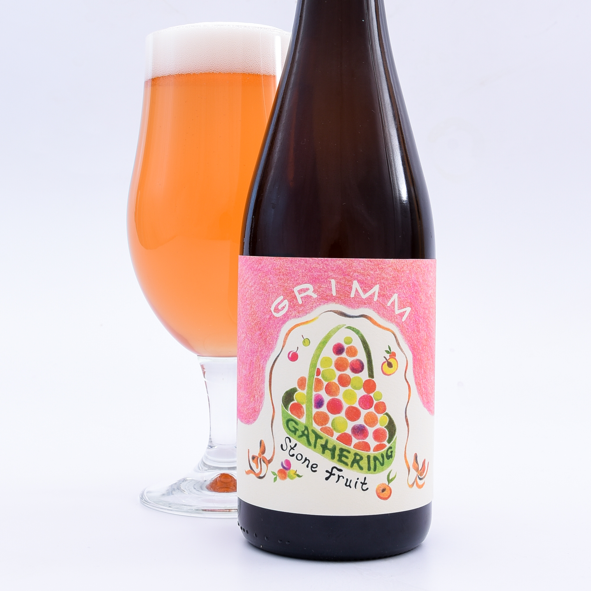 Featuring ripe, local apricots, nectarines, and plums, the brewers started by spontaneously fermenting the fruit using carbonic maceration. That’s a type of fermentation that occurs from the inside out, using carbon dioxide instead of yeast, and ultimately making for a juicier brew! Then they blended all that nectarous stone fruit and let it ferment a second time, with yeast, in barrels of Grimm’s aged Sour base.