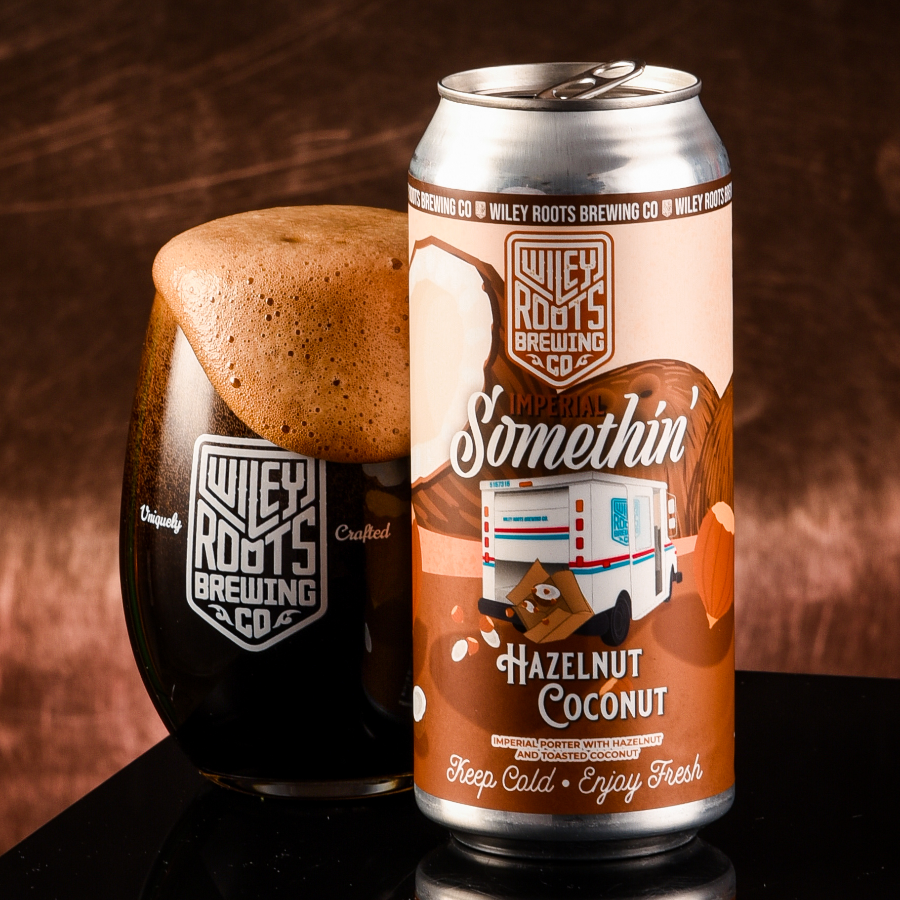 Earthy hazelnuts, and creamy toasted coconut — that’s what the Wiley Roots crew loaded into this Imperial Porter! It’s like a snowy day sitting fireside, but with palm trees!