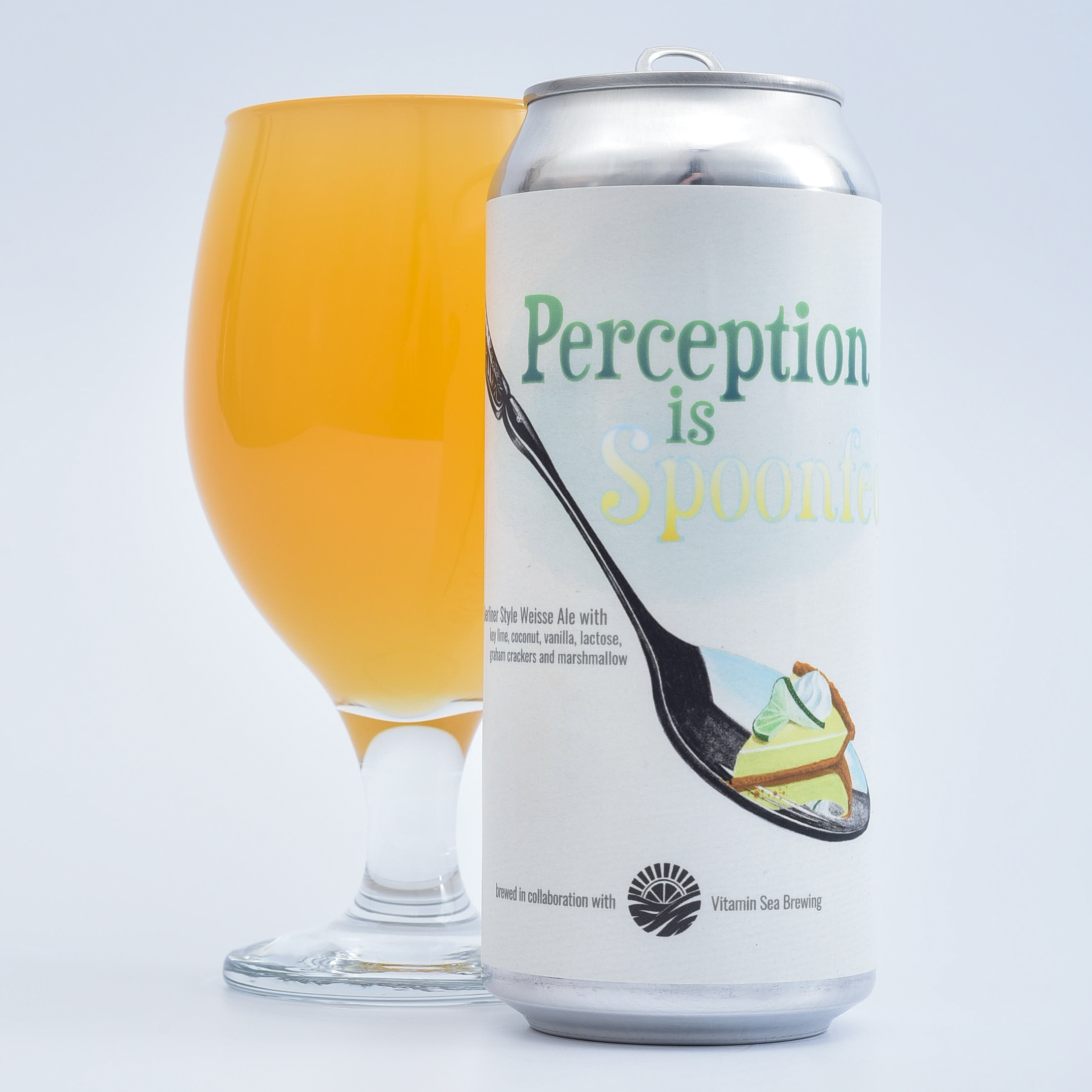 Perception is Spoonfed overflows with the tangy juices of key limes and the sweetness of flaked coconut and vanilla. Velvety marshmallows and milk sugar add a supple fullness to the mouthfeel, while nutty graham crackers give it a mouthwatering pie crust finish.