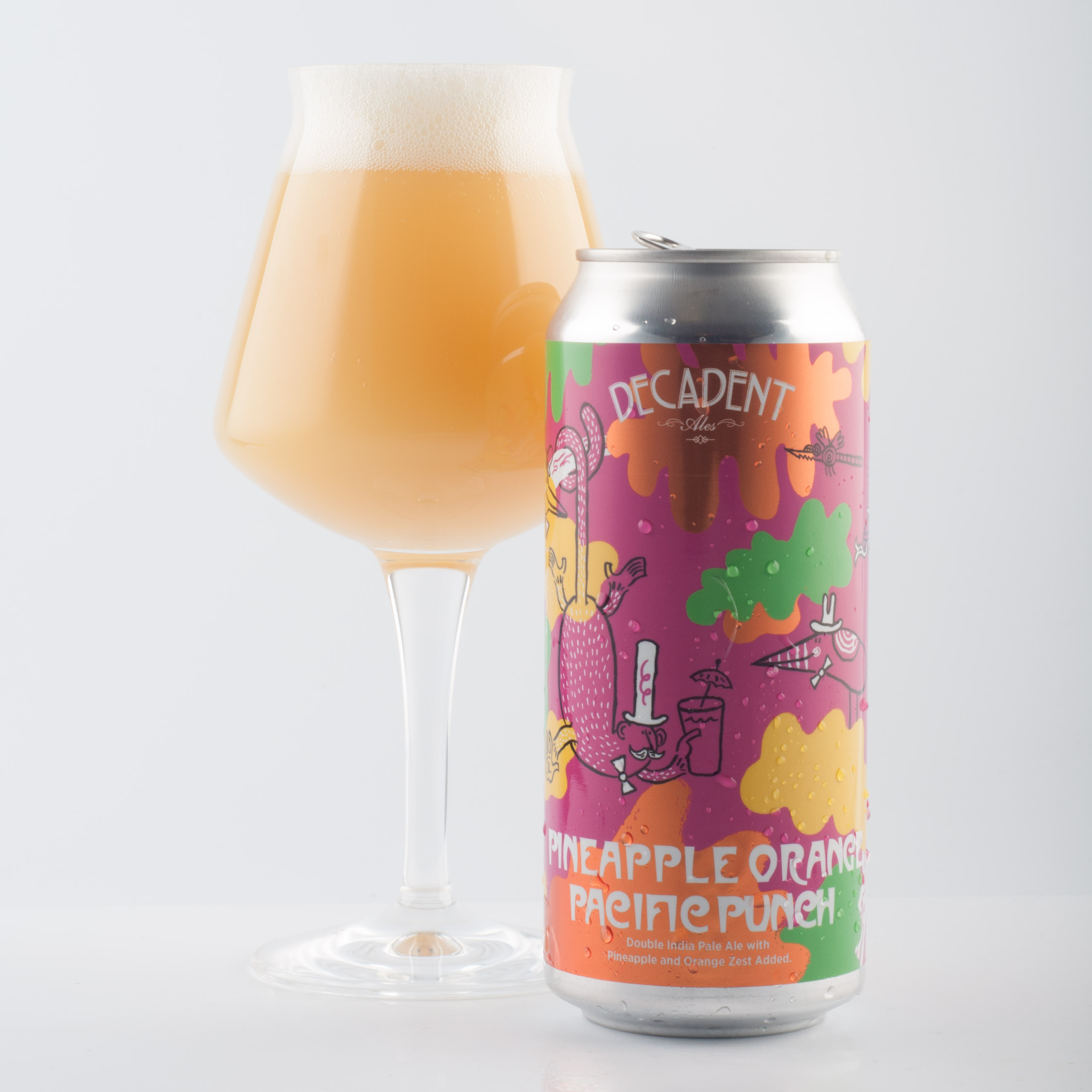 From a DIPA crafted with real Vermont maple syrup to a strawberry Pop Tart-inspired sipper, it seems the sky’s the limit for these craft confectionaries. And today’s 9.1% ABV Pineapple Orange Pacific Punch Double IPA fits right into their taste bud-tantalizing troupe of bombastic brews.