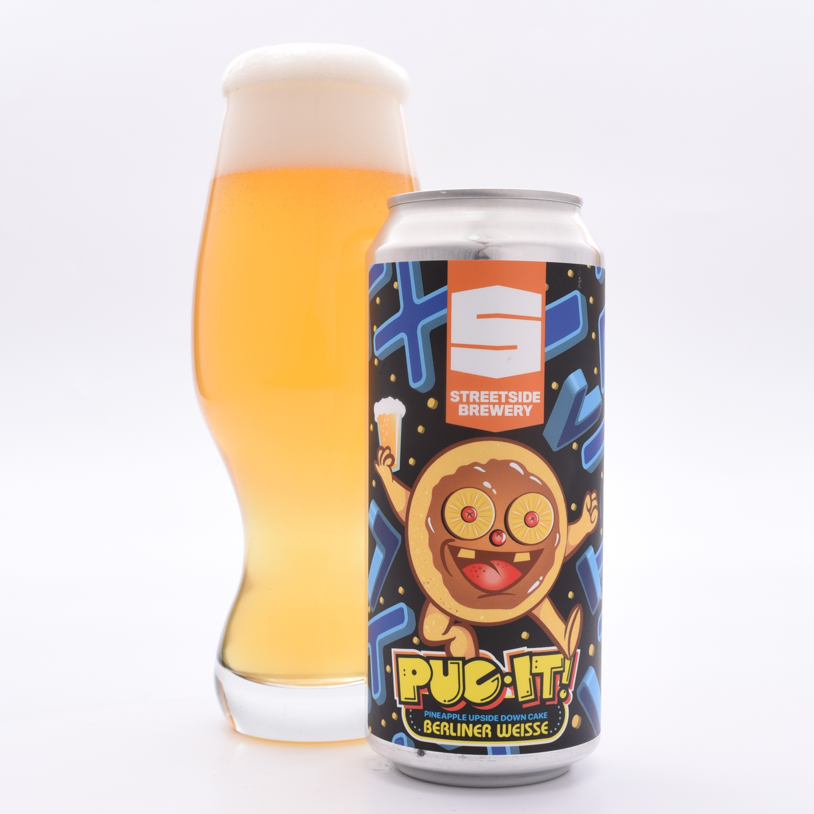 Fun fact: Pac-Man’s original name was Puck Man but was renamed to avoid vandalism for its international release. P.U.C. It! is a pineapple upside-down cake (P.U.C.) Fruited Berliner and a fun callback to the character’s history! The high score-topping team at Streetside loaded this luscious stunner with succulent pineapple and subtle cherry for vibrant bursts of nectarous juice. Cake flavor from the base swirls throughout.